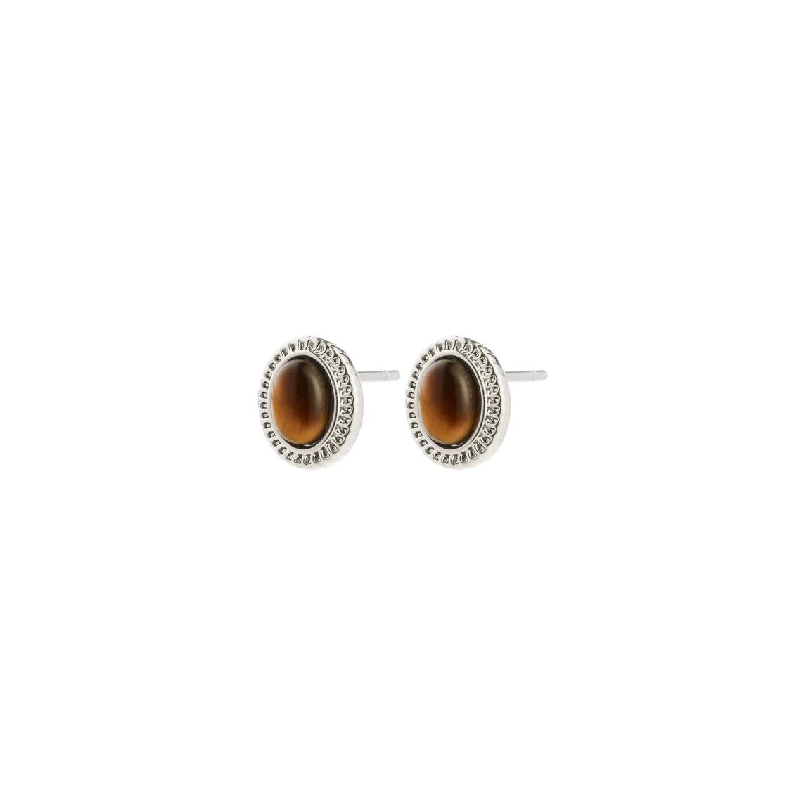 Between moments, new paths unfold! Welcome autumn with Pilgrim's plated BETWEEN stud earrings. Small cabochon-cut Tiger Eye stones evoke autumn's earthy vibes, and the antique-inspired gold setting adds a classic vintage charm to your look. Perfect for those who cherish boho chic with a hint of classical elegance. Pair them with a cosy knit and vintage-inspired jeans for a relaxed autumn style. The earrings are crafted from 75% recycled materials—style with a purpose!