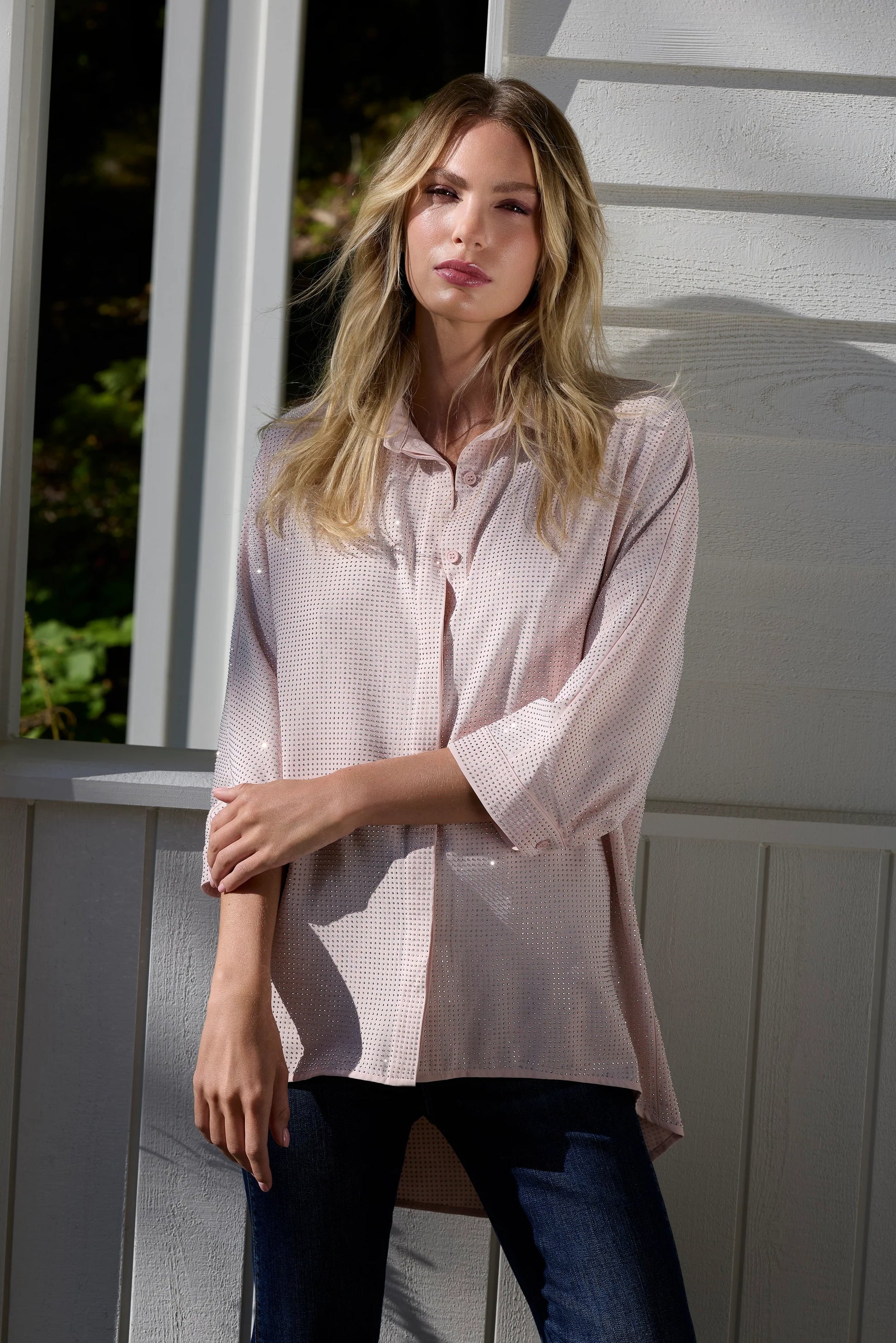 Blush button up sparkly blouse 266514