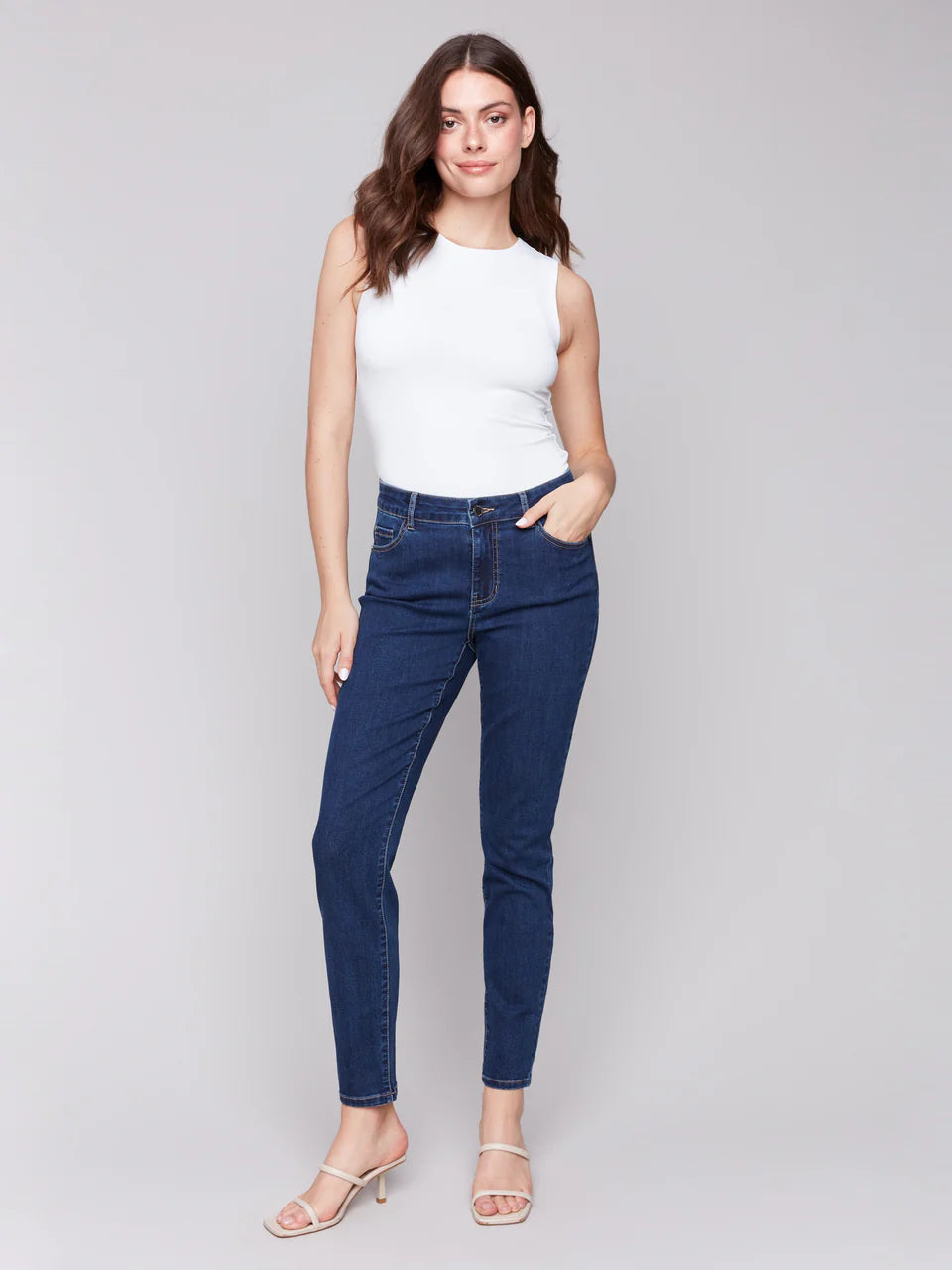 Slip into these stylish Carine Skinny Jeans in Indigo blue and elevate your everyday style. Featuring a flattering fit, they offer versatility to effortlessly transition from day to night. Perfect for pairing with a chic blouse or a casual tee, these jeans are the ultimate spring and summer wardrobe staple you've been searching for.